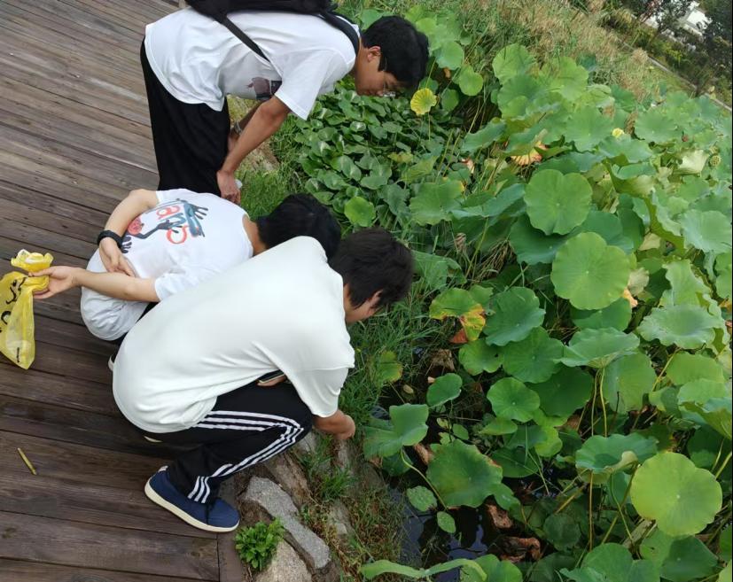 盛夏的周公河畔,芦苇摇曳,白鹭翩跹。团队在指导教师的带领下,深入周公河湿地公园、新水河污水处理厂、嘉明污水处理厂等5个关键点位开展实地考察。成员们在不同河段、不同时段采集水样15份,检测化学需氧量、氨氮等核心指标;通过问卷调研和深度访谈,收集沿岸村民、企业代表和环保部门的一手资料。烈日炎炎,队员们手持问卷、记录数据,用相机与笔记详细记录生态细节,深切体会到河流治理的复杂性与系统性。